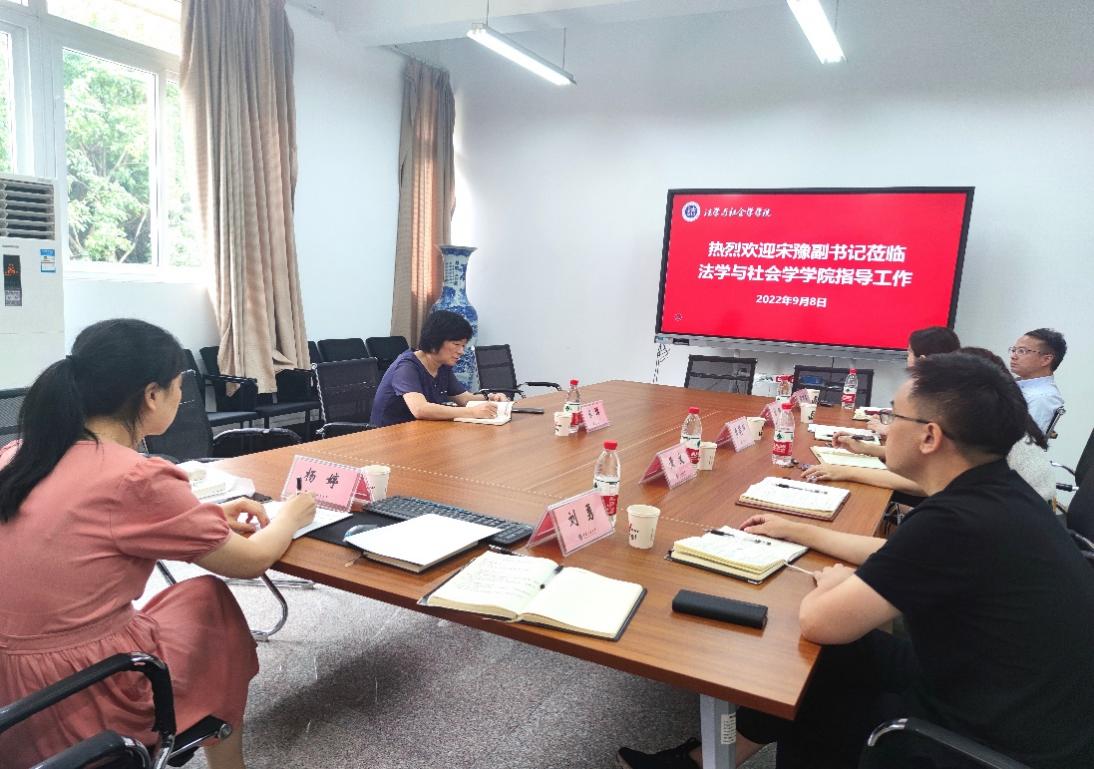 在座谈会上,学院党委书记李莉莎从党的建设、安全稳定、疫情防控、就业工作等方面进行了汇报;院长黄文就重点学科、一流专业、科研平台建设等方面的工作进行了汇报;学院党委副书记林璐汇报了学生返校准备、特色学生活动、学生备考等工作情况;副院长刘勇汇报了近期科研工作和研究生就业工作;副院长侯明喜汇报了教师说课、专业审核评估、微专业建设等工作情况。宋豫对以上工作进行了详细的回应和指导。