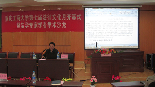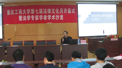 开幕式结束后举行了首届法学专家学者学术沙龙。学院四位专家学者分别就自己最新的研究成果进行了主题讲座。学校法律顾问、学院法学专家张忠民博士作了题为《中国转基因食品安全法律规制热点问题》的讲座;知识产权专家、日本北海道大学访问学者杨和义教授作了题为《中日职务法律专利制度比较》的讲座;重庆市民法、经济法、国际经济法研究会副会长、研究生导师华鹰教授作了题为《专利池构建与运作模式探讨》的讲座;中国政法大学博士后袁维勤博士作了题为《政府购买养老服务之探讨》的讲座。同学们认真聆听了此次学术沙龙。