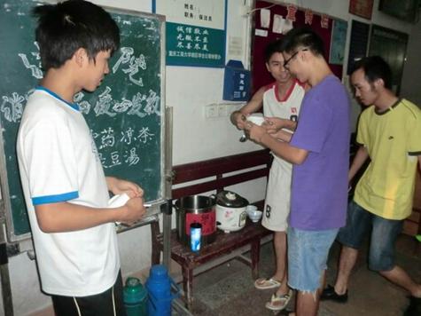 自立秋以来,在将近一个月的时间里,重庆的天气并没有丝毫的秋意,反而频频出现40摄氏度以上的高温天气。对此,学院分团委立即采取对应措施,提供了一系列防暑消热服务。法学院分团委学生干部分组行动,有的冒着炎炎烈日前往药房,为同学们购买了藿香正气液、板蓝根以及清热凉草等防暑消热药品;有的想方设法借用各种厨房用具熬制中药凉茶、绿豆汤等饮品,从食疗的角度达到清热消暑的目的;有的深入楼栋各寝室给同学们讲解防暑、消热的小窍门,多渠道、多方面来帮助同学们适应“秋老虎”。学院分团委的这一系列关怀行动,为同学们送去了炎炎夏日里最清凉的“一杯水”,赢得了同学们的一片赞扬。