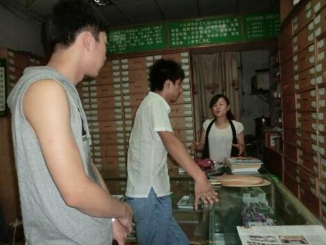 学生会干部向药房专业医师咨询防暑消热小窍门