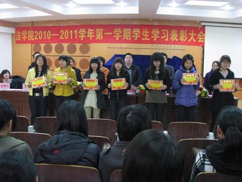 乘着希望之风,大会进入了第一个流程,分别就荣获“课堂学习 标兵”、“单科学习标兵”、“学习进步标兵”、“好笔记”、“第八届‘天平杯’法学论文大赛”获奖的同学以及“模拟法庭大赛”获奖的班级给予了表彰并举行了颁奖仪式,肯定了大家在2010―2011学年第一学期所取得的突出成绩,希望大家再接再厉为自己争取更多的荣誉,为学院增添更多的光彩。