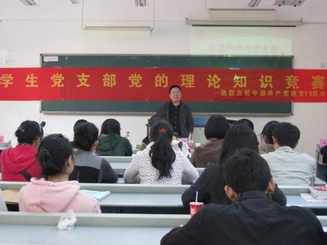 在中国共产党建党九十周年之际,法学院学生支部成功开展了党的理论知识竞赛活动,给母亲送上了一份特别的礼物。法学院党总支书记杨和义老师、学生第一支部支部书记林细妹老师、学生第一支部组织统战委员薛薇老师以及全部学生党员出席了本次活动。