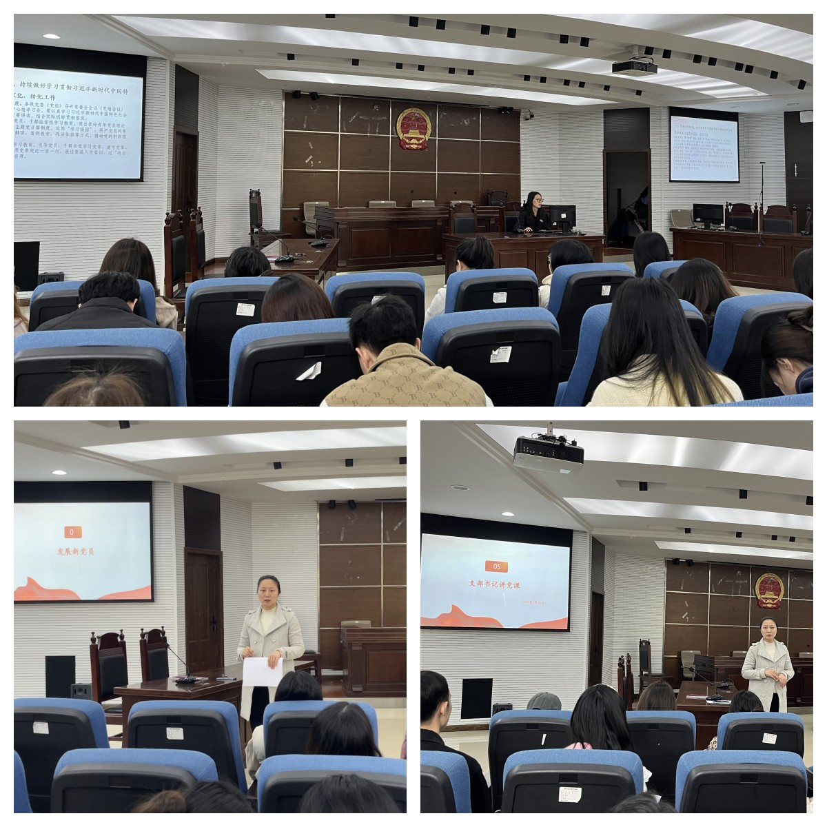 会议第一部分,集中学习党的理论知识。杨天婵同志领学学习贯彻习近平新时代中国特色社会主义思想主题教育成果、周豪同志领学习近平春节前夕赴天津看望慰问基层干部群众、蒋可人同志领学习近平在 2024 年春节团拜会上的重要讲话精神。