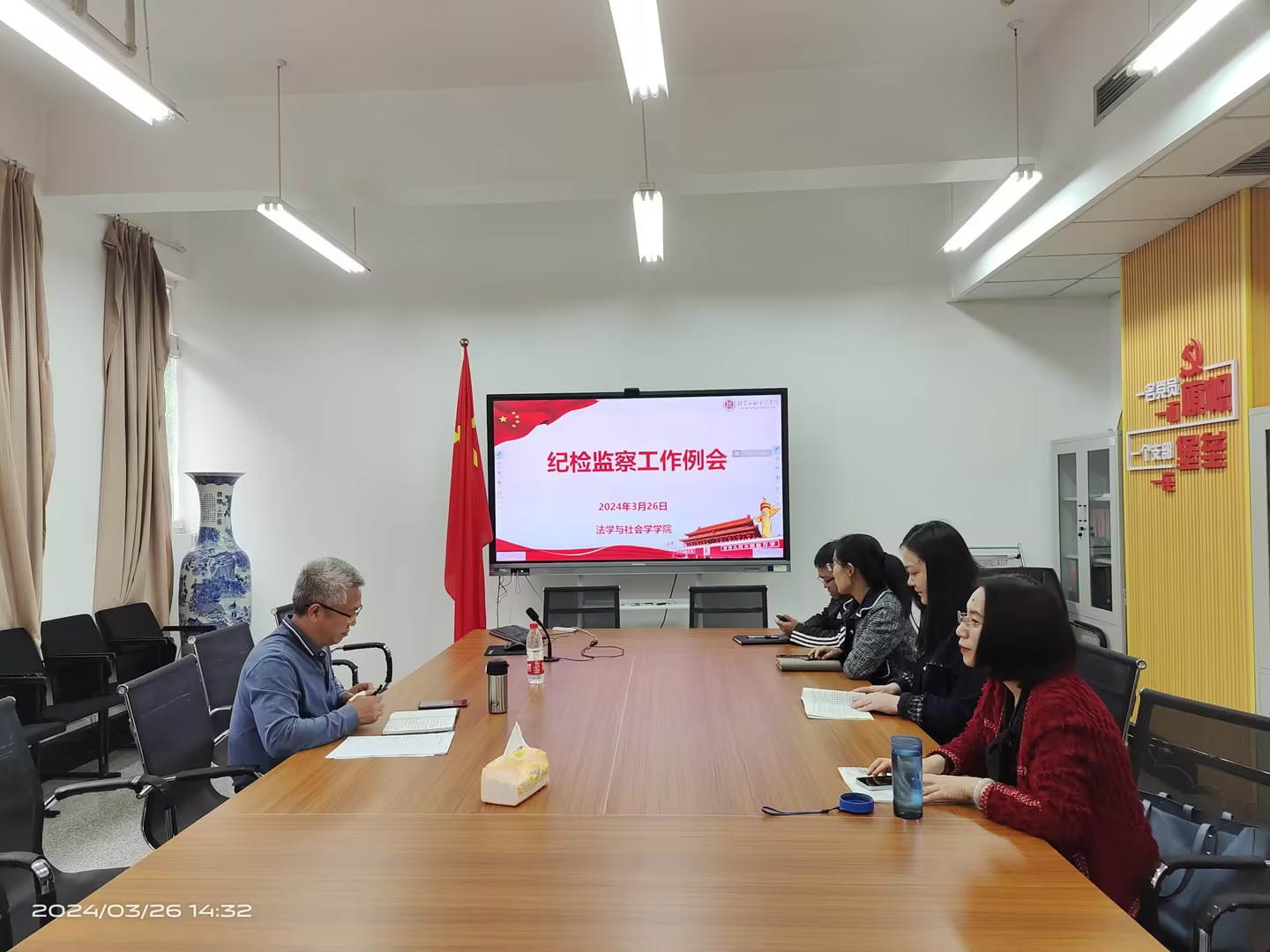 3月26日下午,学院纪律检查委员会在慧智楼90407会议室召开3月纪检监察工作例会暨纪律警示教育活动。会议由学院组织委员陈善国同志主持,学院纪律检查委员参加会议。