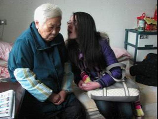 与福利院老人谈心