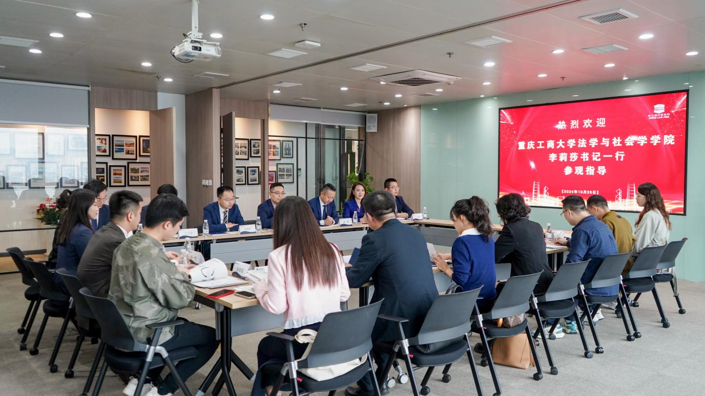 10月25日,437437必赢国际党委书记李莉莎、法学系主任公杰、学团办主任何祖润、法学系教师向往带领学院硕士生走访重庆钜沃律师事务所参观交流。重庆钜沃律师事务所党支部书记刘长伟,高级合伙人秦健、洪杨、赵成松,合伙人王文波及律师代表广江鹏、胡尧、严江余、侯皓雯、张一明参加座谈会。