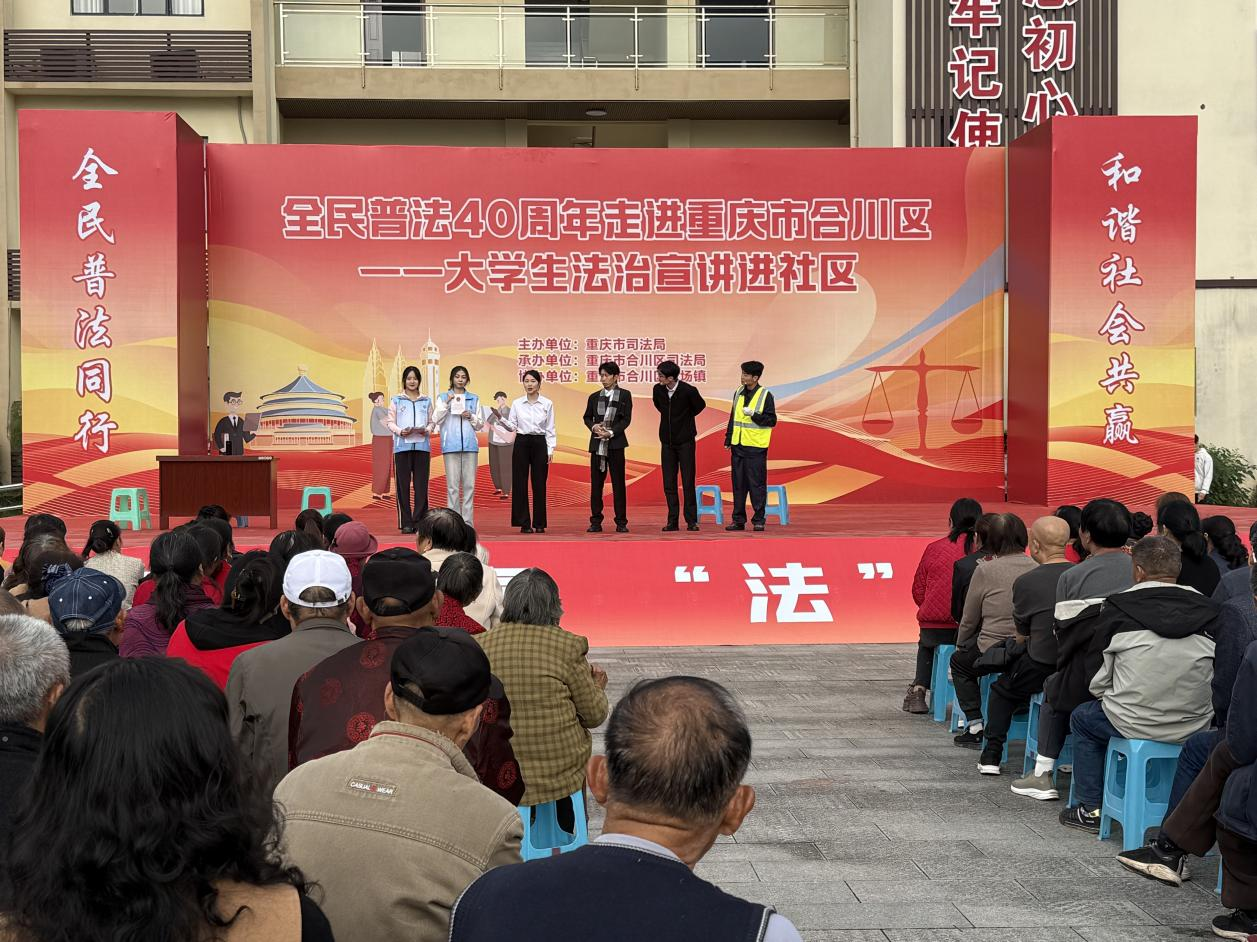 11月4日,受重庆市司法局邀请,437437必赢国际“渝尚法·赋能强企”普法服务队在学团办主任何祖润的带领下走进重庆市合川区土场镇杨柳村,参加重庆市全民普法40周年走进重庆市合川区——大学生法治宣讲进社区活动。