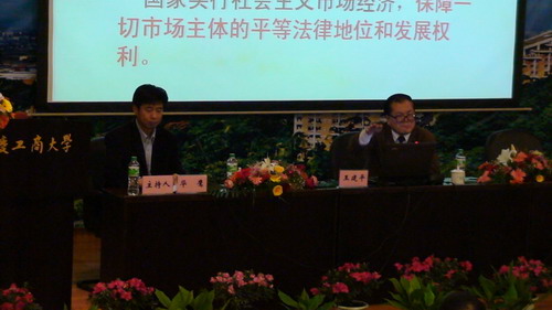 会上,王建平教授主要就新颁布的《物权法》中的热点和焦点问题进行了深入浅出的分析,他丰富渊博的学术知识、视角独特的精辟分析、诙谐幽默的演讲风格赢得了在场老师和同学们的阵阵掌声。王教授还与同学和老师进行了现场互动,回答了他们提出的各种法律问题。会后同学们表示这种专业讲座让他们对法律学习产生新的认识和兴趣,明白了法律学习应当关注社会热点问题。
