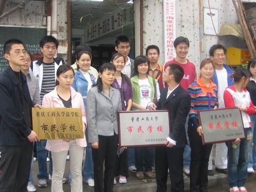 4月24日下午,我院与政治与社会发展学法学院、外语学院及体育学院一同在南岸区海棠溪街道学府路社区居委会举行了“437ccm必赢国际市民学校”挂牌仪式。学府路社区居委会的部分领导及四个学院的青年志愿者代表参加了此次仪式。