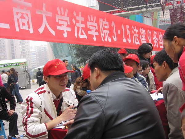 2007年3月15日上午,法学院组织近30余名师生,走上街头,在南坪步行街元旦广场开展3.15消费者权益保护法律义务咨询及宣传活动。