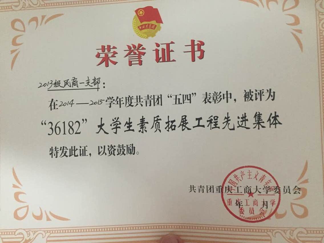 我院历来重视学生的德智体美全面发展,让学生各种修养素质得到拓展是我院重点工作。经过民商法1班同学们的不懈努力,2013级民商1支部,在2014—2015学年度共青团“五四”表彰中,被评为了“36182”大学生素质拓展工程先进集体。