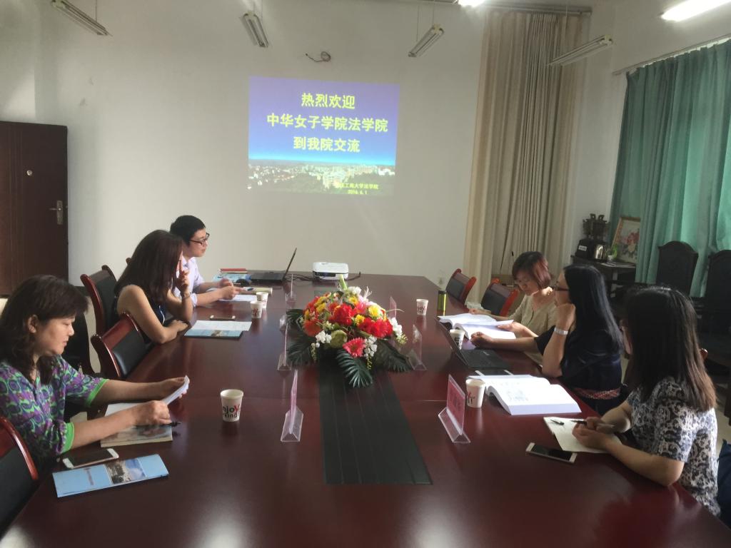 2016年6月1日上午10:30,中华女子学院法学院刘春玲副教授、黄晶博士、但淑华博士等一行3人赴我院交流。交流座谈会在学院90429会议室举行,法学院专任教师张晓娟副教授、马迅副教授以及教学秘书范文杰参加了本次交流。