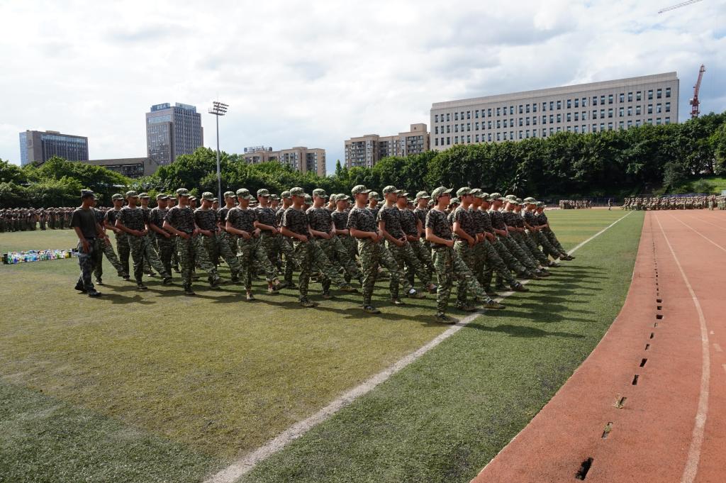 高校学生军训是学校开展国防教育、培养高素质人才的重要形式,它要求通过坚忍和服从等自我约束的方式来磨练人的意志力、强化学生的纪律性。在本次军训中法学院学子们无惧高温、不怕苦累,在训练中苦中作乐。同学们凭着强烈的集体荣誉感,征服了一个又一个的团体训练项目,许多同学带伤或带病坚持训练,他们用自己的坚持和汗水收获着成长。