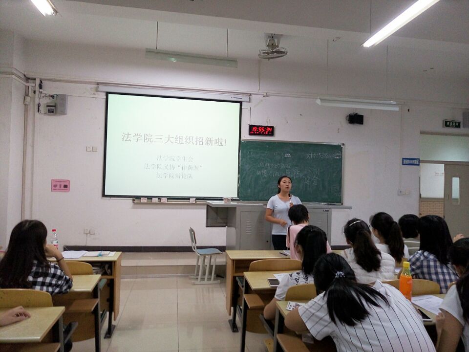 新的一学年,法学院又迎来了一张张崭新的面孔。为了全面展开和落实我院第十五届分团委学生会的建设工作,我院新一届的主席、部长团于2016年9月21日前往江北校区开展招新宣传活动,随后分别于23日、25日进行初试和复试,经过一系列甄选,我院于26日完成学生会全部招新任务。