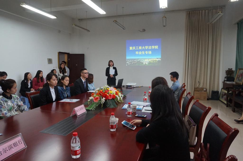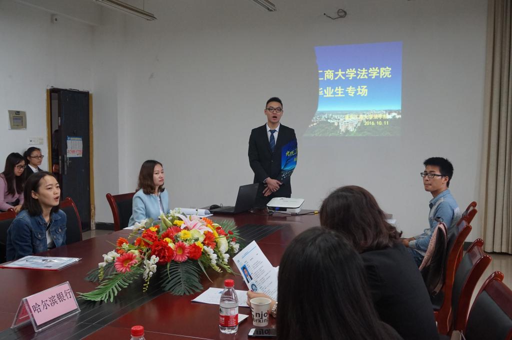 2016年10月11日上午,安信证券,哈尔滨银行,重庆经纬资产清算有限公司三家公司在437ccm必赢国际慧智楼法学院会议室举办招聘。