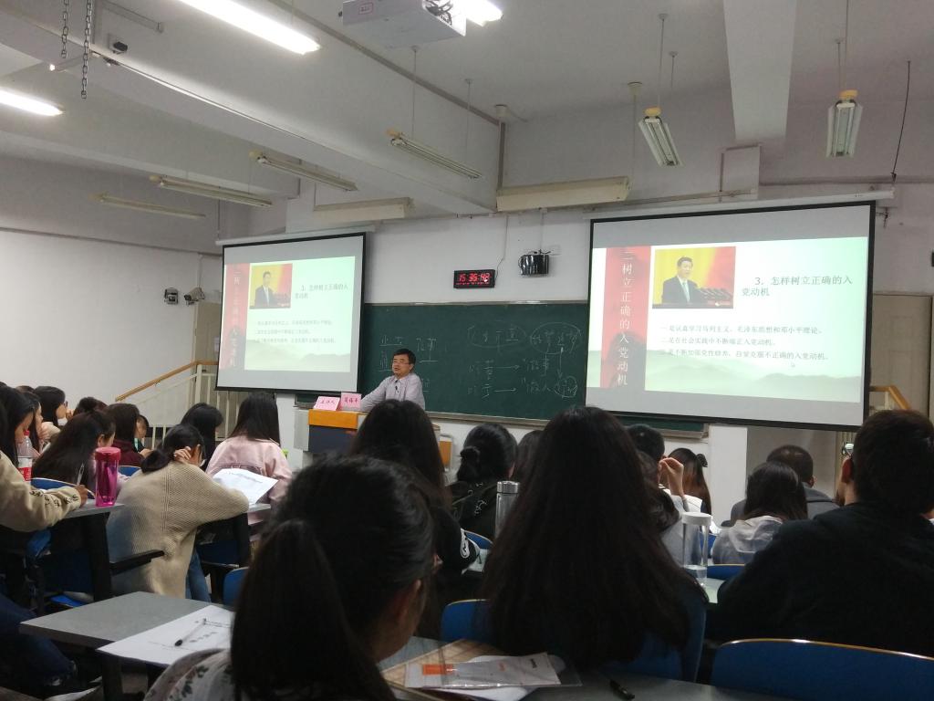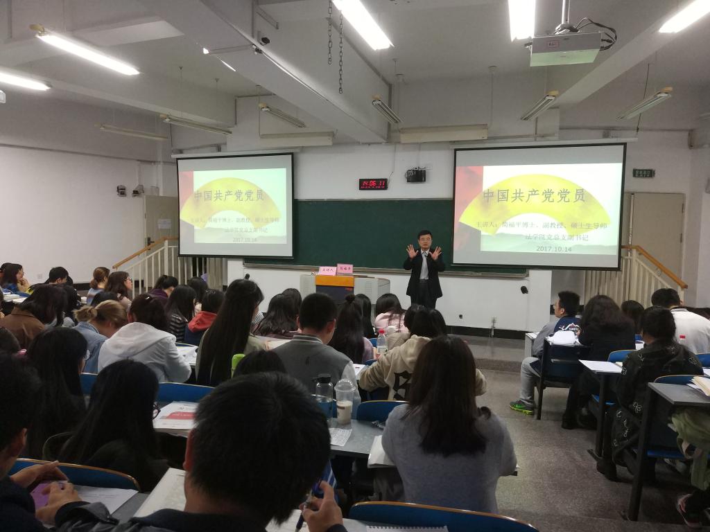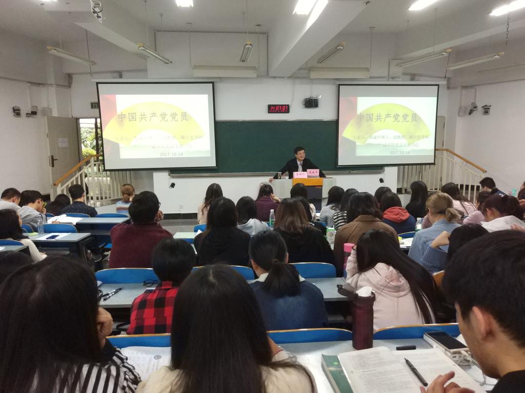 10月14日下午,法学院党总支副书记简福平博士、副教授为本次入党积极分子培训班学员讲授了题为《中国共产党党员》的主题党课。