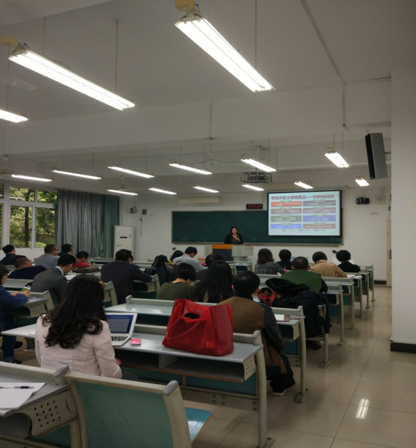 紧接着,学院党总支书记李自维教授用三个精美PPT为各位老师讲解此次审核评估要点,包括审核评估的含义、指导思想、范围、重点、对评估结果的利用等等,对学校学院总体情况的介绍,师资队伍、办学定位、目标等,收到了很好的培训效果。