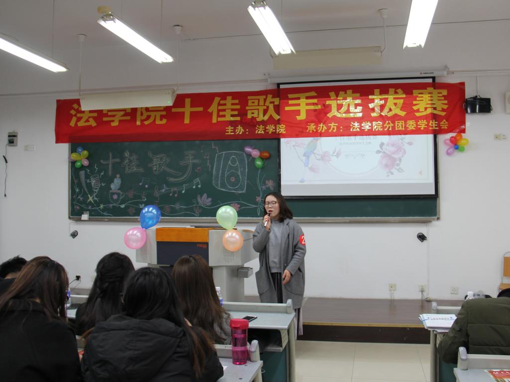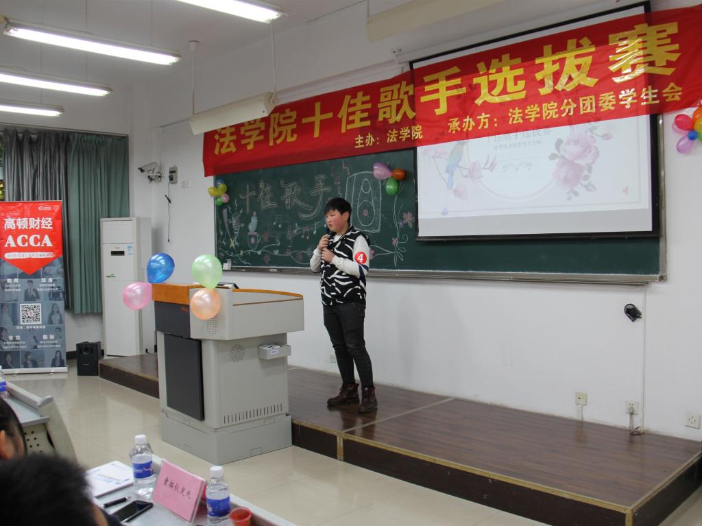 为全面贯彻和落实十九大精神,响应十九大号召,发展素质教育,培养德智体美全面发展的社会主义建设者和接班人,同时也为了选拔学院优秀的歌唱人才,2017年12月1日下午3时,由437ccm必赢国际法学院分团委学生会承办的法学院十佳歌手选拔赛在南岸校区慧智楼90325隆重举行。担任此次活动的评委为上届校园十佳歌手张渝和毛雯婷,体艺部部长闫钰涓担任本次活动的主持人。