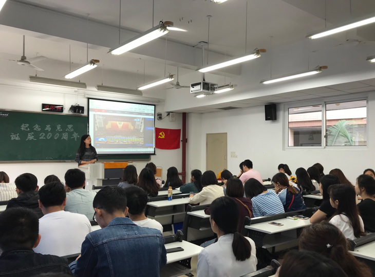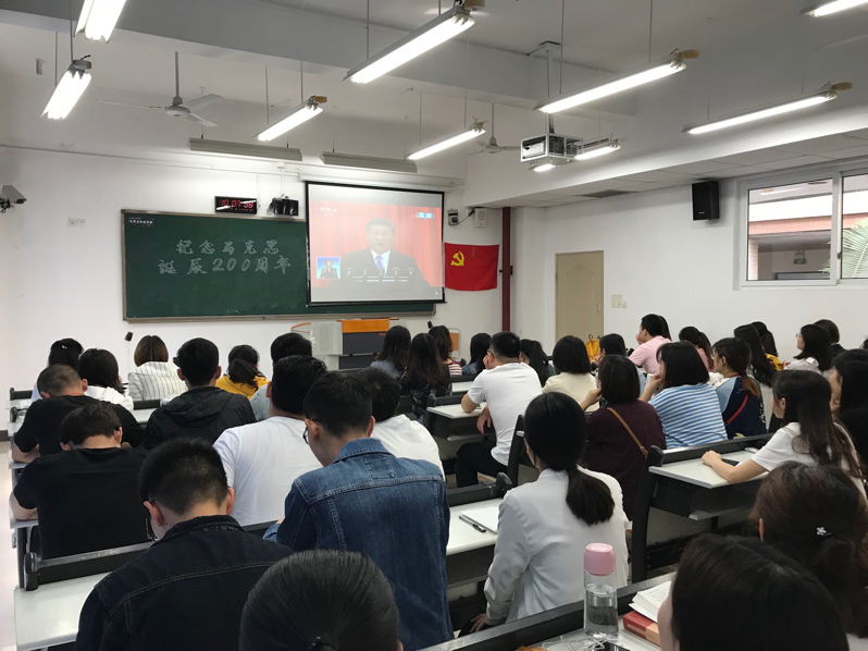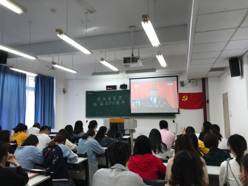 2018年5月4日上午10点,纪念马克思诞辰200周年大会在人民大会堂举行,中共中央总书记、国家主席、中央军委主席习近平出席大会并发表重要讲话。法学院学生党支部组织全体党员及部分入党积极分子在90302教室收看了此次大会直播。