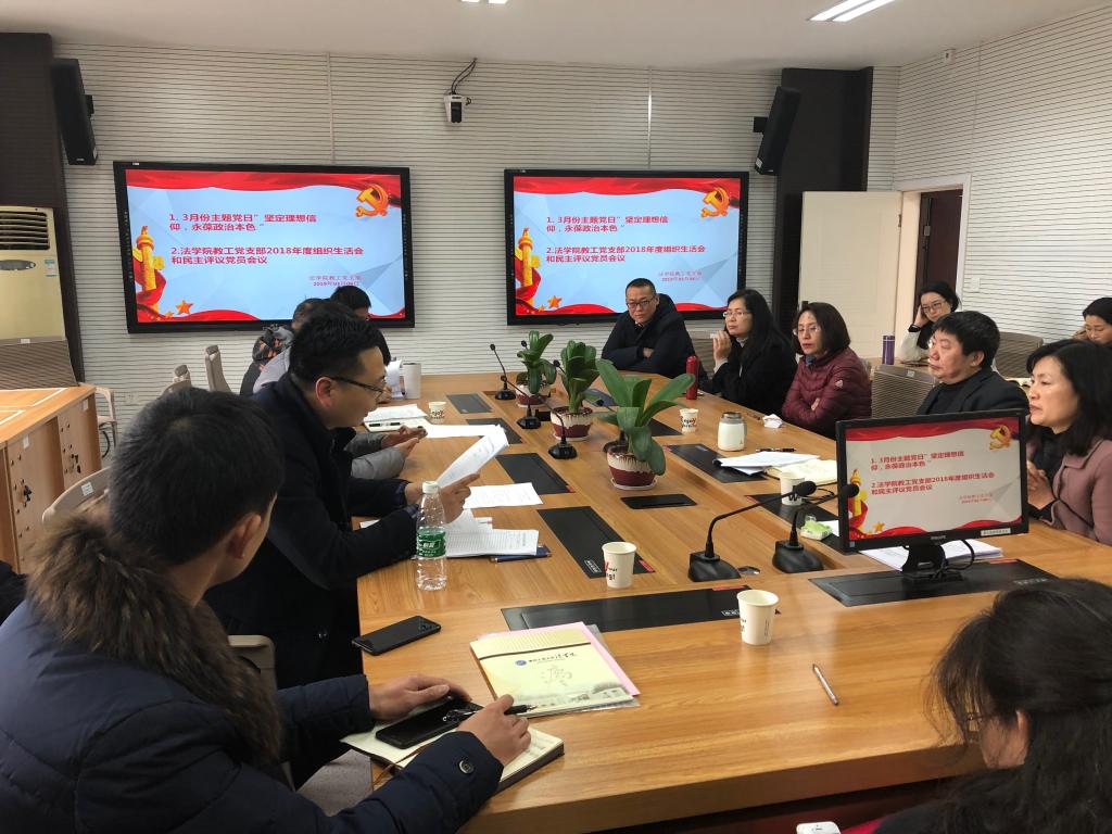 2019年3月8日下午,法学院党总支教工支部举行了由全体教职工党员参加的组织生活会,会议由教工支部书记范志军老师主持。