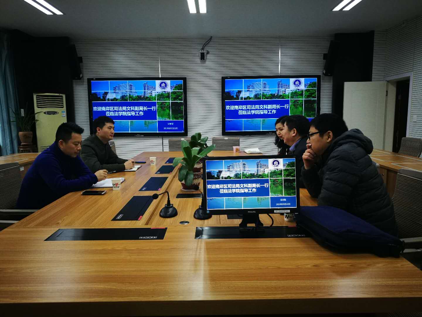 3月22日上午,重庆市南岸区司法局文科副局长一行来法学院检查指导工作。法学院院长杨和义、法学系主任马迅和知识产权系系主任张琨蓓陪同并参加座谈会。会上,杨和义院长首先对文局长一行来法学院指导工作表示欢迎,并详细介绍了法学院以及下辖的重庆廉政研究中心和知识产权运营研究中心的整体运行情况。接着,文局长介绍了南岸区司法局管辖的各个职能部门以及工作职责,南岸区司法局机构改制后,机构增多,现在的功能更强大;然后以司法局和437ccm必赢国际都属于重庆市南岸区为引,导出此次来法学院的目的,希望与法学院建立长期稳定的合作关系,并由此开展广泛和深度的交流,促进人员交往,实现更广领域的合作共赢。最后双方就合作的事宜互相沟通,希望近期达成书面协议。