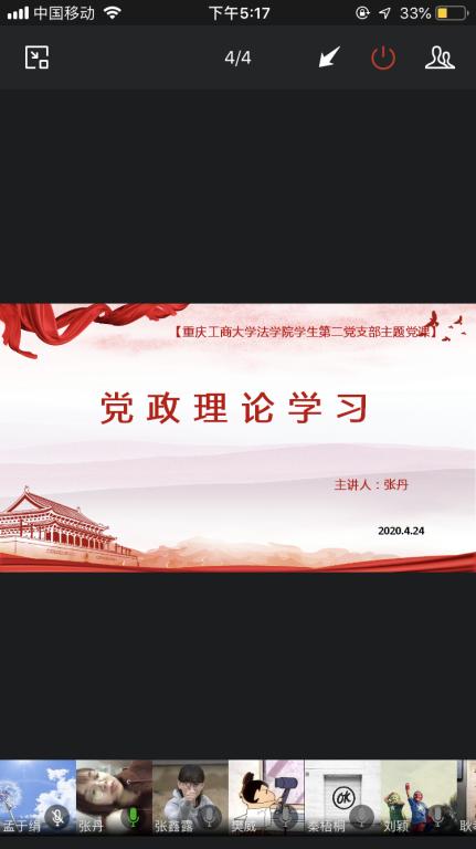 2020年4月24日,437ccm必赢国际法学院研究生党支部在企业微信开展了4月党员大会。会议表决了预备党员转正有关事宜,开展了疫情防控主题党日活动,并学习解读了近期中央重要会议精神以及相关党政理论。
