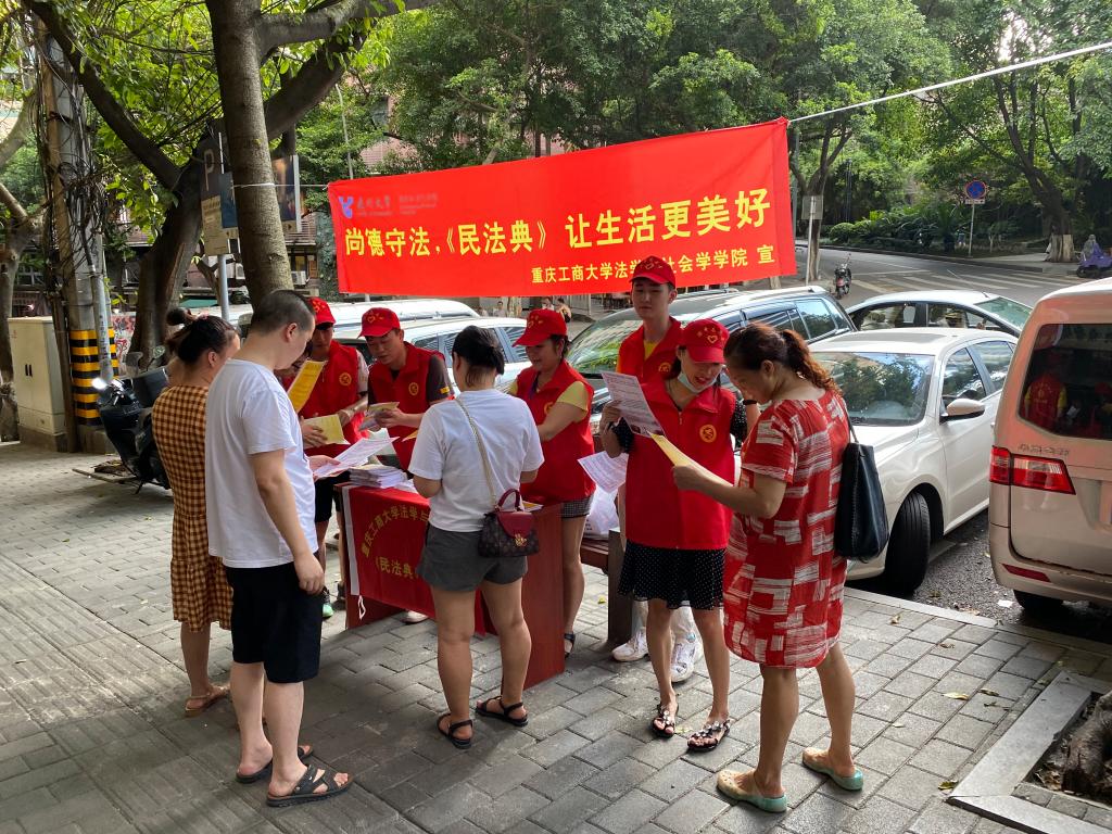 为深入学习贯彻习近平新时代中国特色社会主义思想,引领教育广大青年学生勇做担当民族复兴大任的时代新人,在《中华人民共和国民法典》诞生之际,437437必赢国际依托由重庆市法学会、市司法局、团市委共同主办的全市青年普法志愿者法治文化基层行活动组建了《民法典》青年普法志愿者服务队。大学生志愿者们结合自身所学专业知识利用暑期走进社区开展了一系列《民法典》宣讲活动,并结合当前时事热点为社区居民带来疫情之下的食品安全防范和维权等义务解读,同时利用微博等新媒体进行法律争议解读等线上“云普法”。