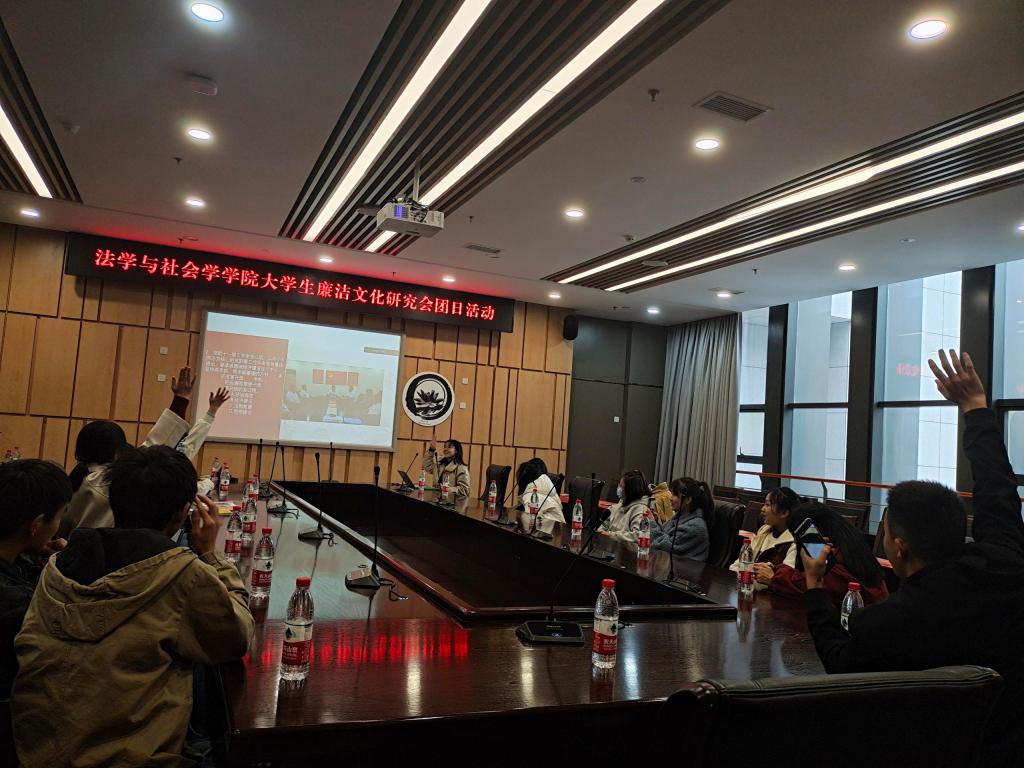 在社会廉洁知识竞答活动中,同学们踊跃举手答题。竞答题目就廉洁相关认知和概念,廉洁建设的地位作用等知识进行竞答,让同学们对廉洁建设应用方面有更进一步的了解,清楚意识到自己肩负的责任和义务,做到积极为社会廉洁建设投入自己的力量。