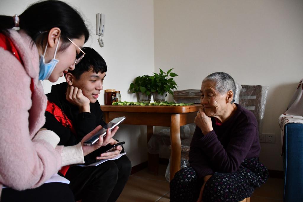 志愿者们下午两点到达目的地,在罗家坝社区负责人的带领下前往老人的家中。在出发前,志愿者同负责人了解了老人的基本情况以便后续志愿服务活动有序开展。到达目的地后,负责人同老人说明相关情况,老人热情的招待着志愿者,感谢社会挂念他们。志愿者为老人唱歌,歌声唤起了他们的回忆,他们向志愿者讲述着自己的经历,志愿者拉着老人的手安静的倾听,用心感受着属于他们的时代。考虑到独居老人的安全,志愿者们对老人进行了简短的普法宣讲和《民法典》解读,让他们警惕生活中的骗局,提高防骗意识,维护自己的合法权益。时光飞速流逝,不自觉到了分别的时候,离开时志愿者对老人表示最诚挚的祝福。