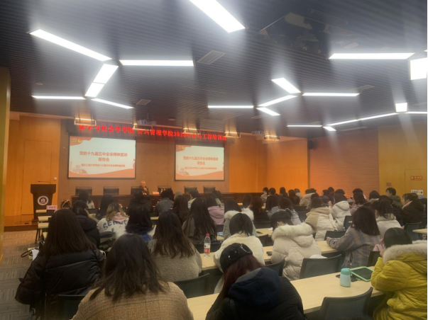 为深入贯彻落实习近平总书记系列重要讲话精神和党的十九大精神,引导青年团干主动学习和掌握党的第十九届五中全会精神,进一步坚定中国特色社会主义道路信念,培养和造就一大批用马克思主义中国化的最新成果武装起来的青年马克思主义者,结合我校长期开展的“青年马克思主义者培养工程”,437437必赢国际、公共管理学院联合举办2020年青马工程培训班暨十九届五中全会精神宣讲报告会。培训班于2020年12月17日12:30在我校南岸校区图书馆多功能厅准时开班。本次报告会由437437必赢国际专职组织员陈善国主讲,437437必赢国际分团委副书记何祖润主持。437437必赢国际、公共管理学院分团委学生会成员以及团支书代表参加了培训。