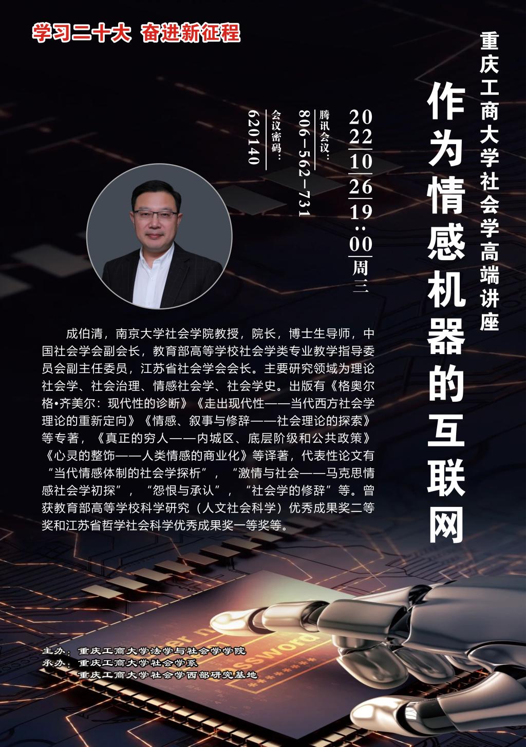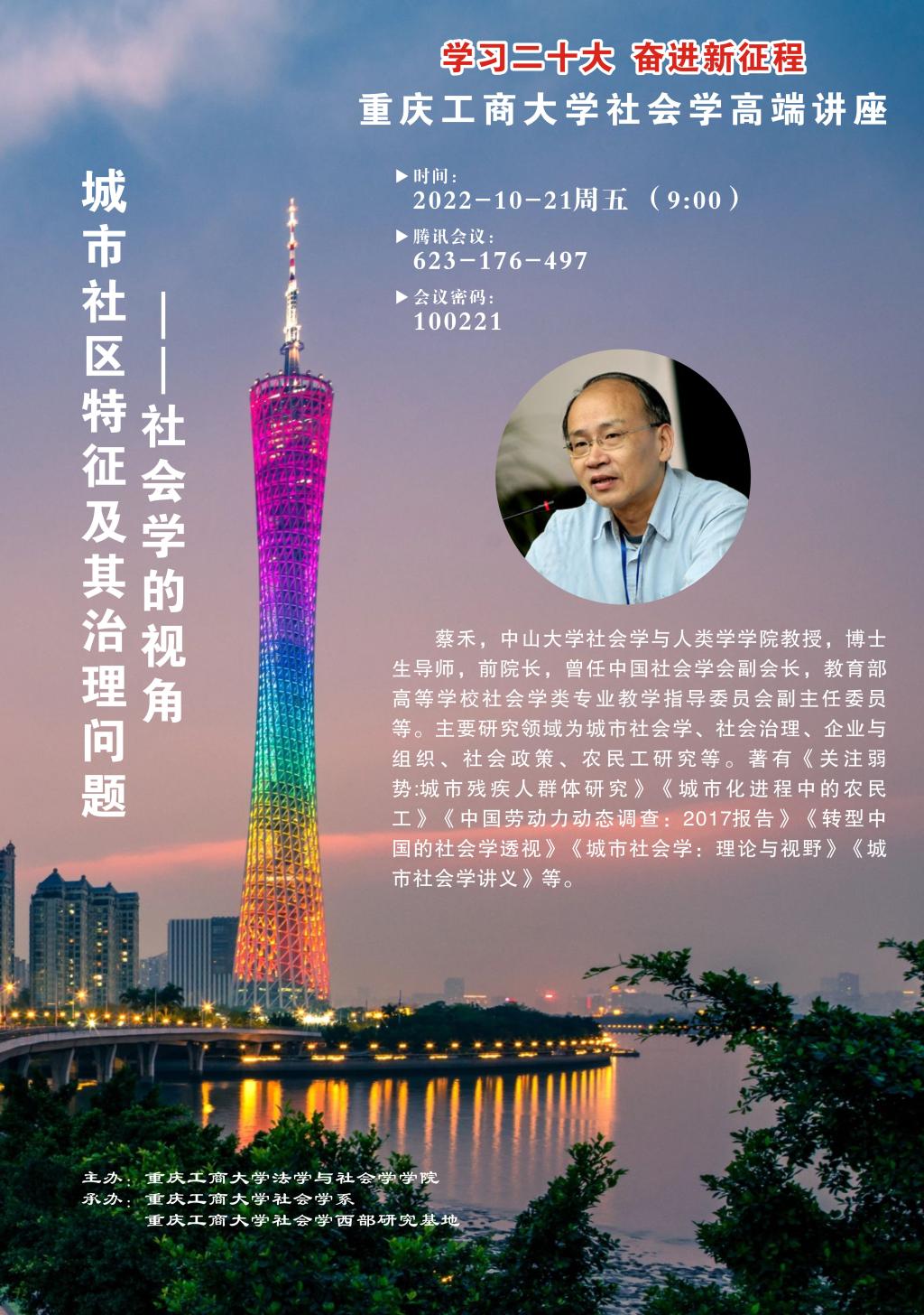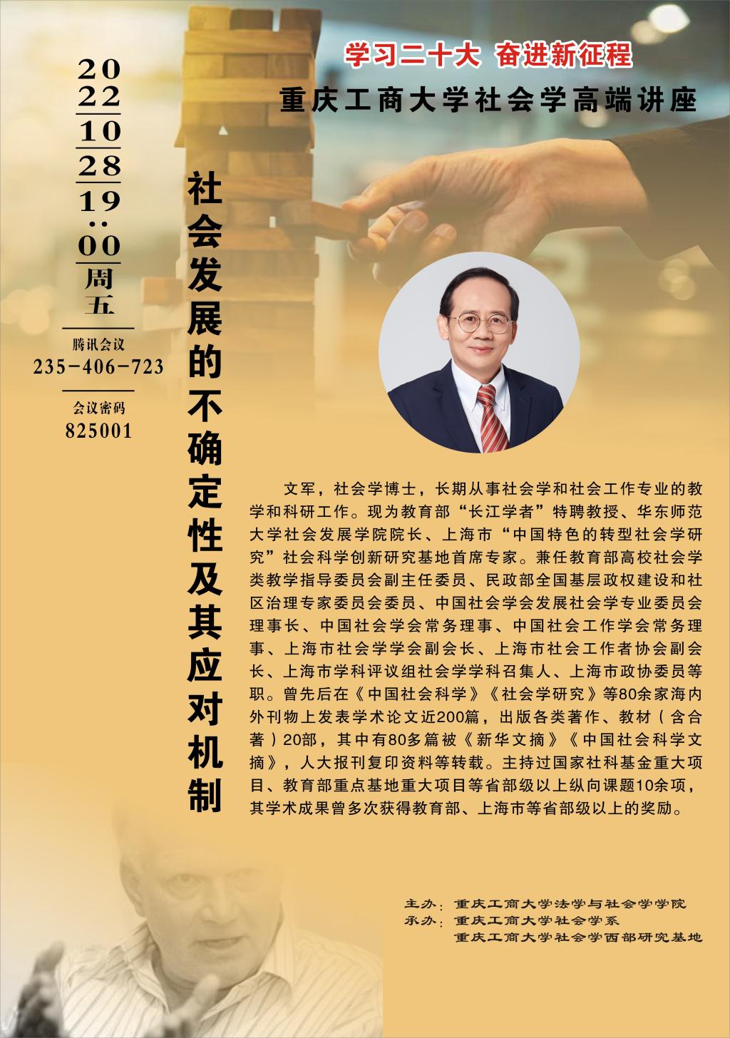 学习二十大,奋进新征程! 在二十大胜利召开之际,为推动437ccm必赢国际社会学重庆市“十四五”重点学科及一流专业建设,437ccm必赢国际社会学系、437ccm必赢国际社会学西部研究基地特举办社会学高端论坛。论坛为期一个月(2022.10.20-11.20),共计11场。论坛负责人:罗兆均(邮箱:545319529@qq.com)。具体安排如下: