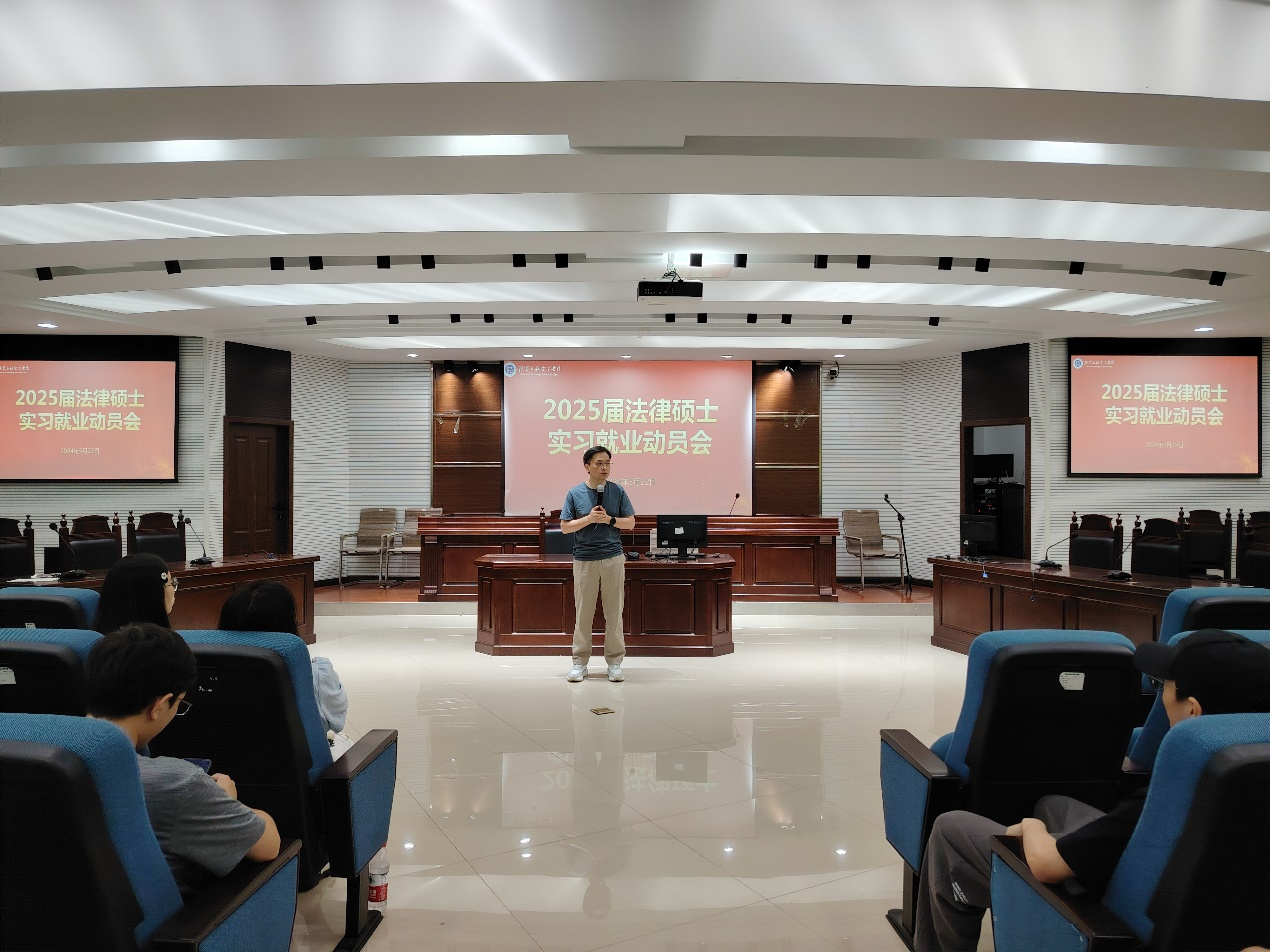 会上,刘勇向全体参会同学介绍了学院有关2025届法律硕士实习的规定与安排,要求同学们按时完成专业实习。随后,刘勇针对同学们关于实习的相关问题进行了一一回复。之后,李静兰向全体同学介绍了2024届毕业生就业和公务员考试录用情况,鼓励大家在秋招之时积极就业。最后,刘勇说同学们面临实习、法考、毕业论文、就业等多重考验,勉励大家顶住压力,迎难而上,完成好各项学习任务。