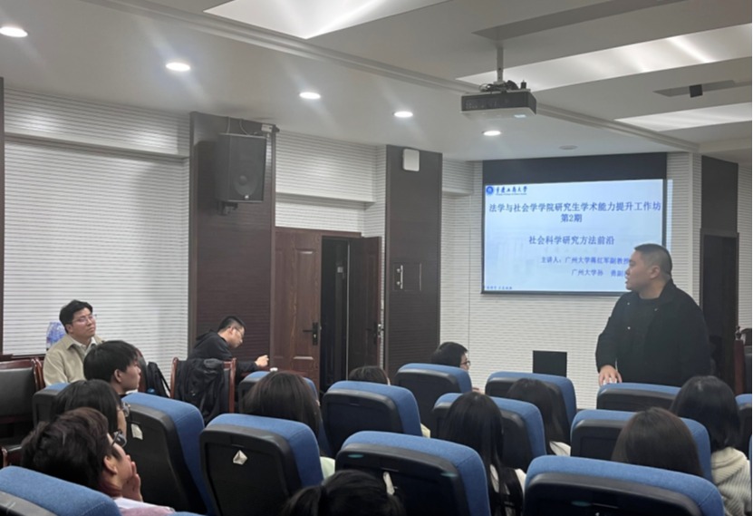 为提升我院的研究生学术能力与水平,2025年10月25日,由437437必赢国际主办的“研究生学术能力提升工作坊(第2期)”在437ccm必赢国际南岸校区第九教学楼顺利举行。本次活动邀请到了广州大学公共管理学院蒋红军副教授与孙勇副教授。学院副院长侯明喜、社会学系王文涛老师、社会工作系胡慧老师及30多名研究生参加了该活动。活动由张东副教授主持。