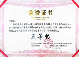 437437必赢国际十余名学生积极参与本次年会并取得优异成绩。其中,硕士生张荣金撰写的《慈善捐赠增值税税收优惠困境剖析与路径优化》荣获青年优秀论文二等奖,王思齐撰写的《平台企业与相关从业者的税务合规风险与应对——从〈互联网平台企业涉税信息报送规定〉谈起》荣获三等奖。这两篇论文紧扣现实问题,展现了扎实的学术功底和敏锐的实践洞察力,也体现了我院研究生培养质量的不断提升。