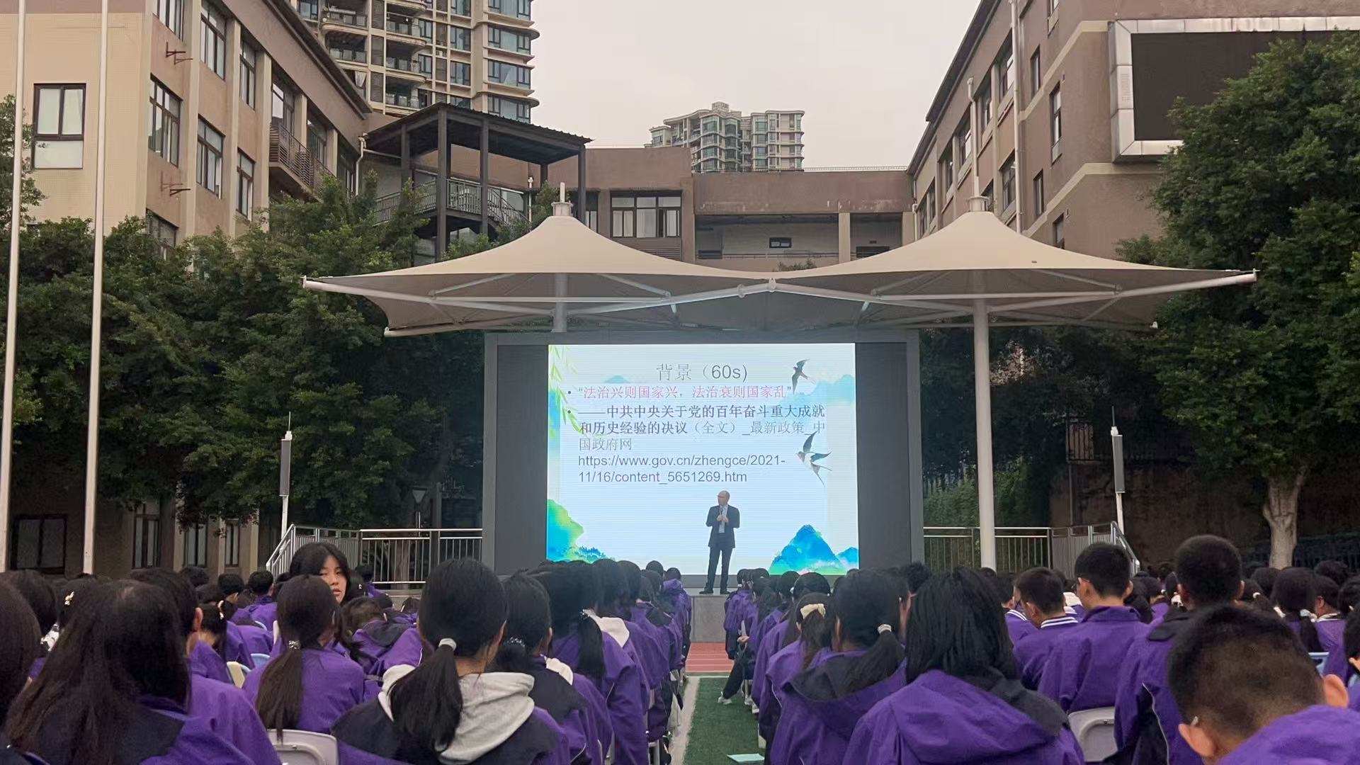 10月24日,重庆市与四川省联合普法川渝讲师团成员、重庆市“百名法学家百场报告会”宣讲团成员、习近平法治思想教研团队负责人袁维勤老师到重庆市110中学为学生做“立志从事法律职业”启蒙讲座。袁老师从《中共中央关于党的百年奋斗重大成就和历史经验的决议》中“法治兴则国家兴,法治衰则国家乱”的重要论断开始切入,结合自身学习工作经历对法官等法律职业的职责、门槛以及中学生可提前预备的几个方面进行了图文并茂的介绍,鼓励青少年学生立志投身法治事业,为建设中国特色社会主义法治体系、建设社会主义法治国家添砖加瓦。讲座前该校陈副校长、科室负责人与袁老师短叙并合影,袁老师介绍了我院招生分数、人才培养、师资力量、学科建设和社会服务等概况。
