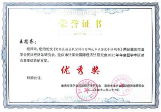 本次会议共有476篇投稿参评优秀论文,约占20%的论文被评为优秀以上论文,我院硕士研究生王思齐撰写的论文《电商直播虚假宣传行为的反不正当竞争法规制》、李欣岳撰写的论文《网络虚拟财产的继承问题浅析》荣获优秀奖,展现了学院在研究生学术创新培养方面的成果。