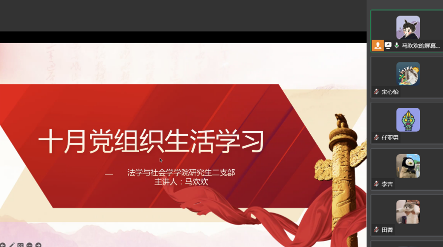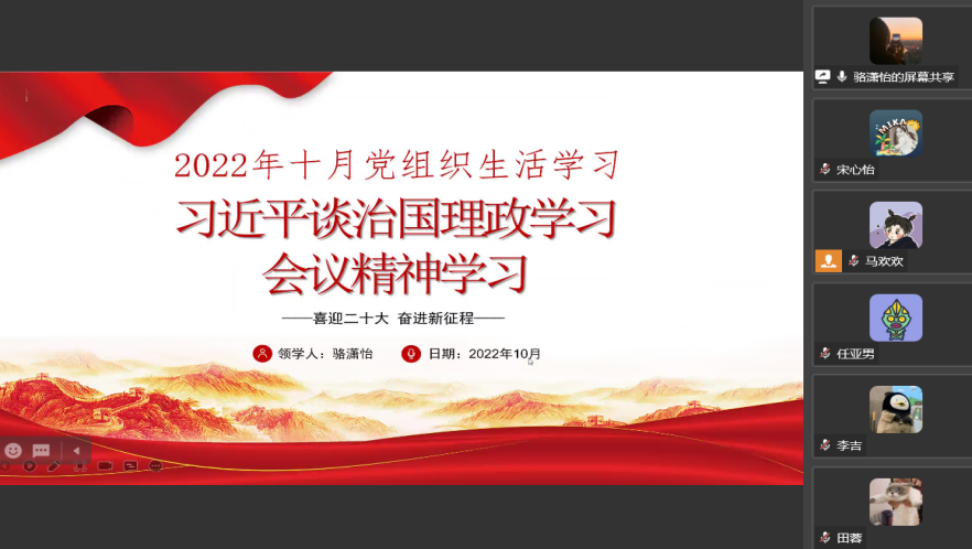 2022年10月24日12点30分,437437必赢国际研究生二支部于线上召开十月党组织生活,支部全体党员参加。