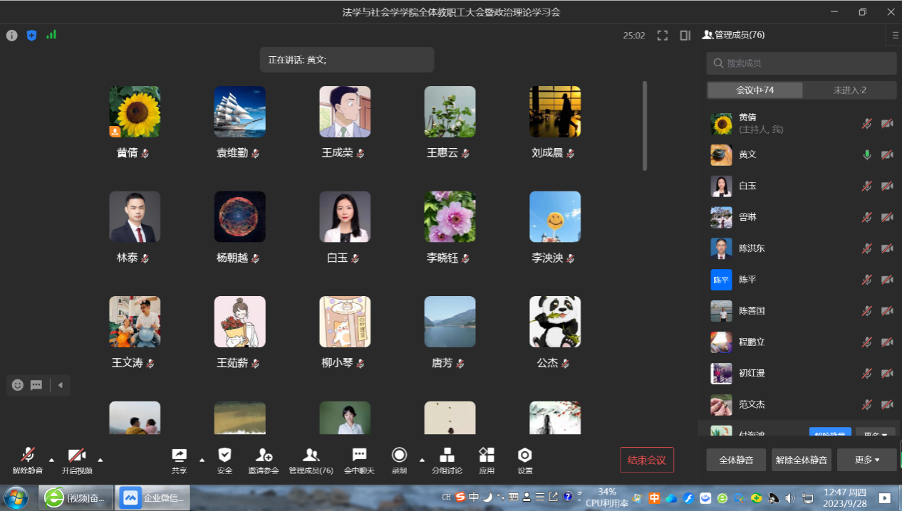 9月28日,437437必赢国际在企业微信召开了全体教职工大会暨9月政治理论学习会。会议由学院党委书记李莉莎主持,学院全体教职工参加了本次会议。