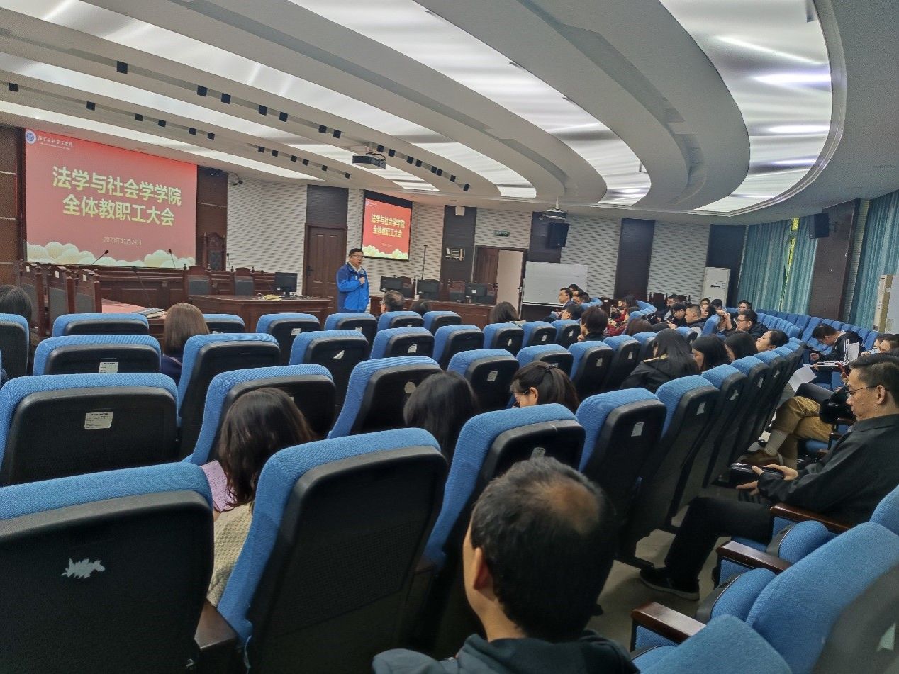 11月24日,437437必赢国际在慧智楼90426会议室召开了全体教职工大会暨11月政治理论学习会。会议由学院党委书记李莉莎主持,学院全体教职工参加了本次会议。