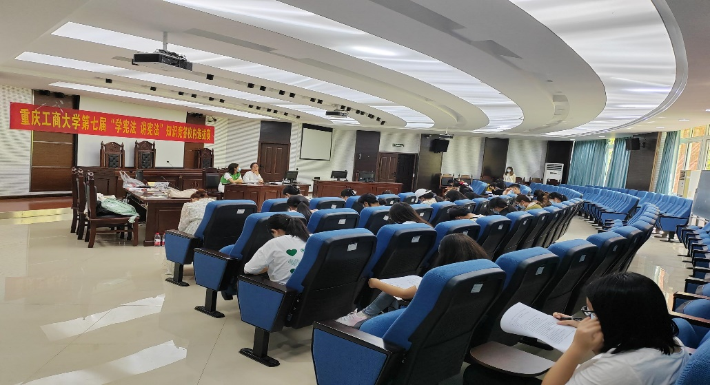 为深入贯彻落实习近平总书记关于宪法学习宣传教育的系列重要指示精神,进一步在校园内普及宪法知识,选拔优秀学子参与全国学生“学宪法 讲宪法”活动知识竞赛重庆赛区赛,437437必赢国际于2022年9月29日成功举办第七届全国学生“学宪法 讲宪法”活动知识竞赛校内选拔赛。本次比赛以“法治新征程,献礼二十大”为主题,吸引33位同学报名,以闭卷考试的方式比拼正确率和答题速度。