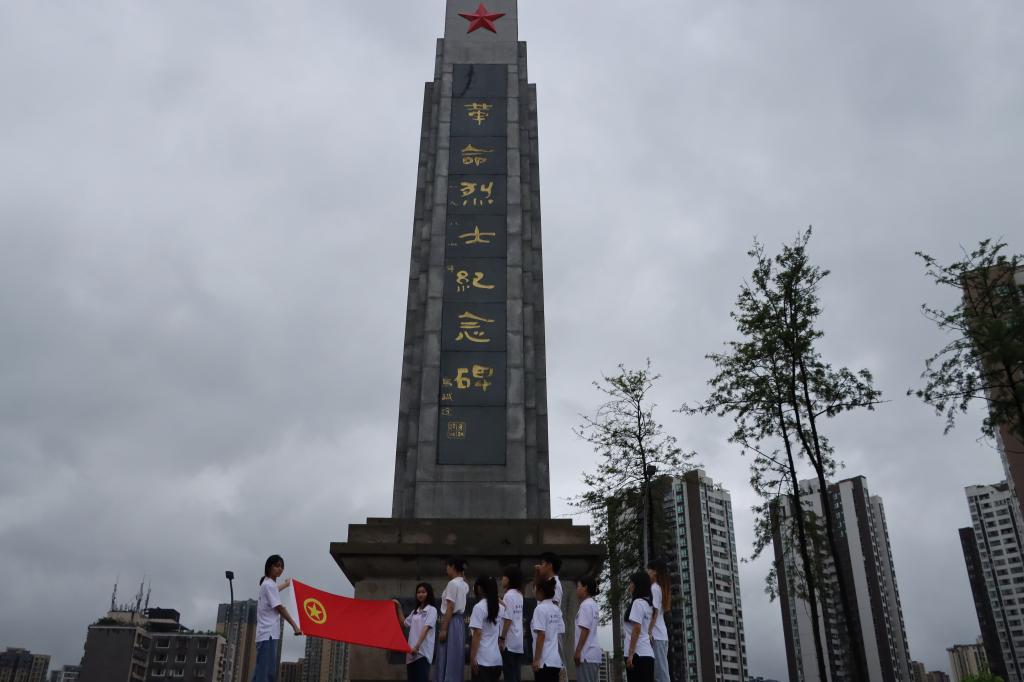 437437必赢国际团委书记、研究生第一党支部组织委员何祖润带领实践团一行来到石柱县革命烈士陵园,高耸的革命烈士纪念碑映入眼帘。通过为同学们讲解田紫轩、刘忠亮等石柱革命烈士的英勇事迹,引导青年大学生深刻领会中国共产党开天辟地、敢为人先的首创精神,坚定百折不挠的奋斗精神和立党为公、忠诚为民的奉献精神。在革命烈士纪念碑前,何祖润带领实践团全体青年团员、入党积极分子重温入团誓词,集体默哀,追思英烈。