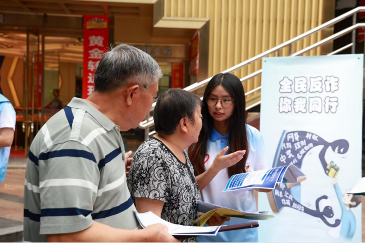 普法志愿者们通过发放宣传手册、现场讲解、互动问答等多种形式,向群众普及常见的诈骗手段及防范措施,详细介绍了电信诈骗、网络诈骗、养老诈骗等多种诈骗类型的典型案例和作案手法,引导他们树立正确的防诈观念,提高自我保护能力。437ccm必赢国际党员教师卢博在街头“摆摊设点”开展法律义务咨询,群众围绕家庭婚姻纠纷、劳动合同维权等现实问题展开提问。