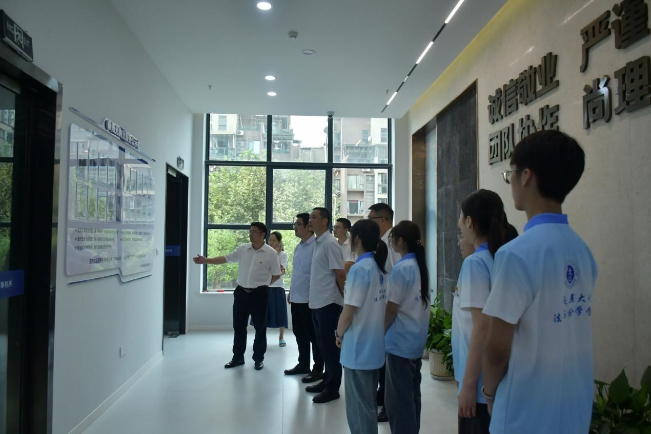 为增进法学学子对法律实务工作的了解,提高普法志愿者的工作水平和法治素养,提升法学专业学生就业竞争力,2024年7月16日,在437437必赢国际教工一支部书记、法学系主任公杰,知识产权系主任焦海洋,学生二支部书记刘桥阳的带领下,来自“律动潼年”普法服务队的12名大学生志愿者走进重庆渝潼律师事务所访企拓岗。