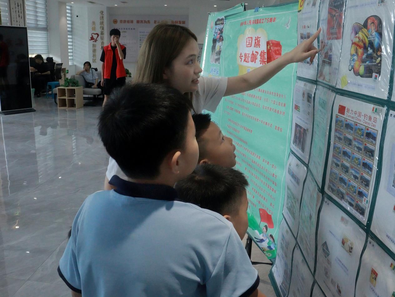 志愿服务团联合永川区中山路街道星光社区为社区青少年举办了一场珍贵邮票专题展览活动。在志愿者的详细讲解下,小朋友们带着好奇心和求知欲踏上了探索邮票世界的旅程。通过参观实践,孩子们不仅学习了中国邮政的历史与发展,还深入了解了不同邮票背后所蕴藏的丰富文化内涵,与大学生志愿者共同领略了中国邮票艺术的无限魅力,进一步坚定了中华民族的文化自信。
