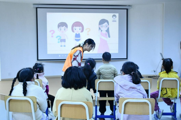 童心筑梦悠悠,健康安全作舟。志愿者们首先通过热身游戏拉近与孩子们的距离,随后播放了视频短片《认识身体和隐私部位》,并组织了相关游戏互动,使孩子们在轻松愉快的氛围中掌握了自我保护的重要知识,紧接着,志愿者们进行了青春期前期身体发育知识的讲解,帮助孩子们以科学、正确的态度面对正常过程中的身体转变。