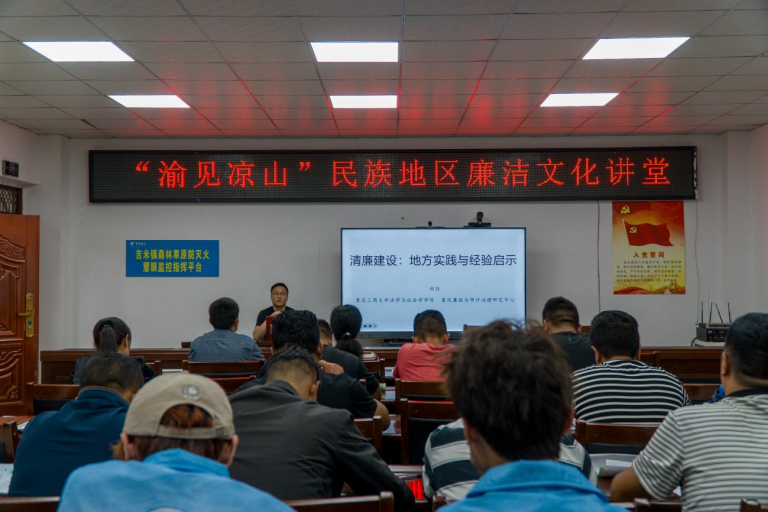 2025年7月7日,为进一步深化民族地区法治宣传教育,为铸牢中华民族共同体意识夯实法治基础,由重庆廉政与审计治理研究中心、437ccm必赢国际大学生廉洁文化研究会师生组建的“渝见凉山”民族地区法律援助团走进四川省凉山彝族自治州甘洛县吉米镇,为吉米镇全体纪委干部开设了一堂别开生面的廉洁文化讲堂。