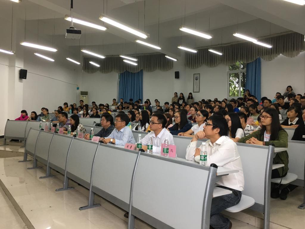 罗观老师主持了本次活动。首先由我院党总支书记李自维教授致辞,李书记在讲话中表达了对同学们的殷切期望,希望同学们牢记我院“崇法明德,卓思睿行”的院训,用实际行动将其传承;随后,法学院院长杨和义教授强调在大学生活中,同学们要坦诚做人、诚实做事,在实践中不断摸索学习方式,善于运用思辨之方法,并鼓励同学们积极利用我院学习资源;接下来我院党总支副书记简福平博士发表讲话,简书记表达了在今后的学习中为大家服务的愿望,鼓励同学们勇敢追求梦想;我院副院长刘勇教授在随后的讲话中指出,希望同学们树立对法学专业的信心,保持学习兴趣,并鼓励同学们积极参加科研活动,为今后的工作打下良好的基础。随后,我院各部门负责老师介绍了自己所负责工作的主要内容及联系方式,希望在今后的学习中为同学们提供帮助。最后法学系主任马迅博士与知识产权系主任张琨蓓分别为法学系与知识产权系新生进行专业教育。