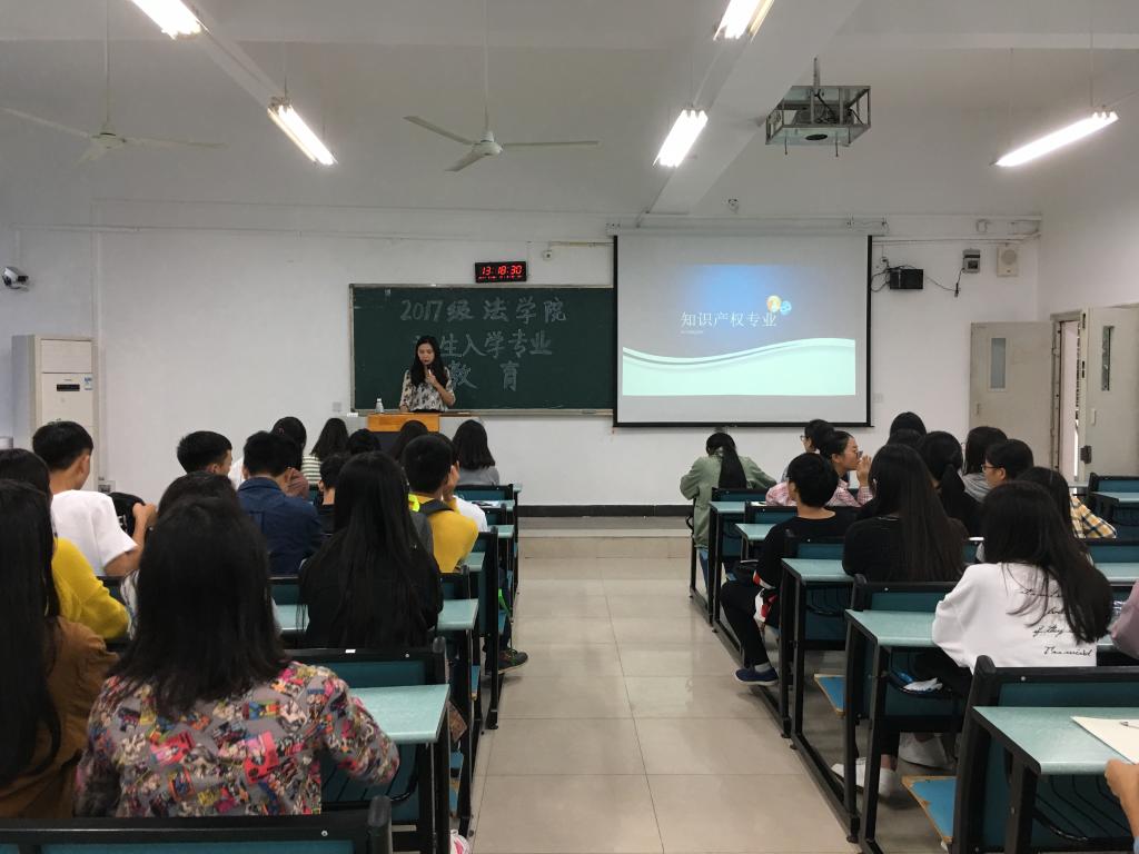 (知识产权系主任张琨蓓老师为知识产权专业同学进行专业教育)