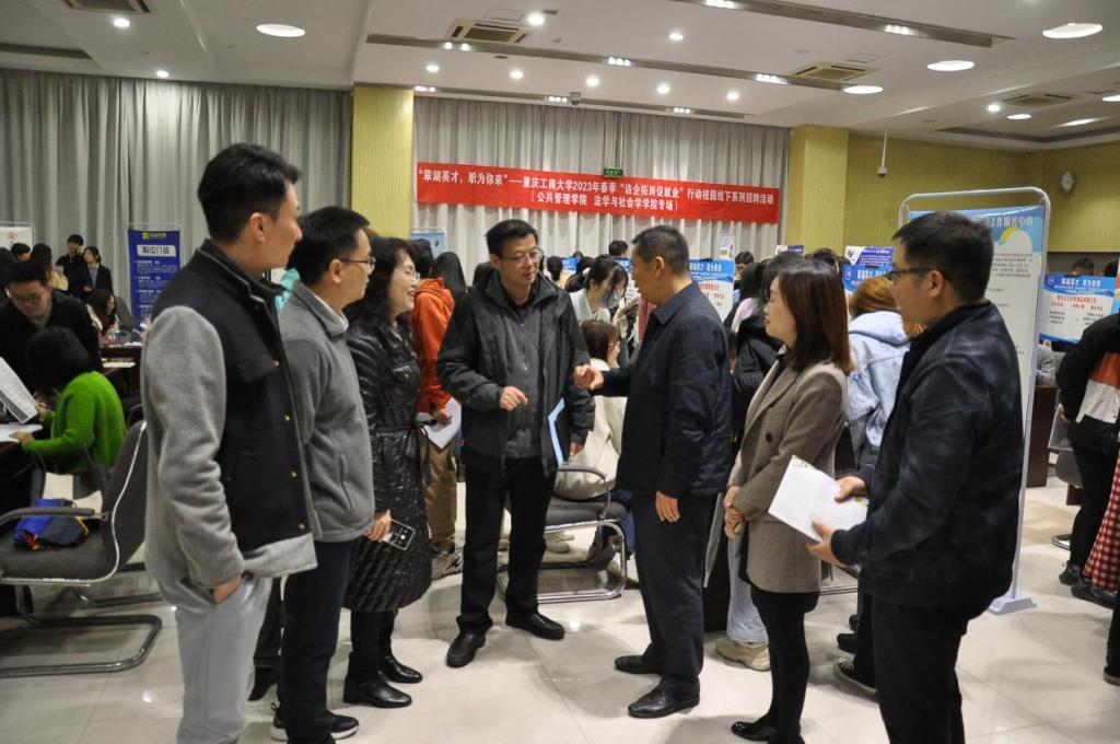 为深化实施“访企拓岗促就业”专项行动,全力做好学校2023届毕业生就业工作,3月29日下午,由重庆市教委、重庆市人力社保局、共青团重庆市委、四川团省委联合主办,招生就业处、校团委承办,437437必赢国际、公共管理学院协办的“翠湖英才,职为你来”—437ccm必赢国际2023年春季“访企拓岗促就业”行动校园线下系列招聘活动暨“双城青才计划——千校万岗”专场招聘会如期举办。
