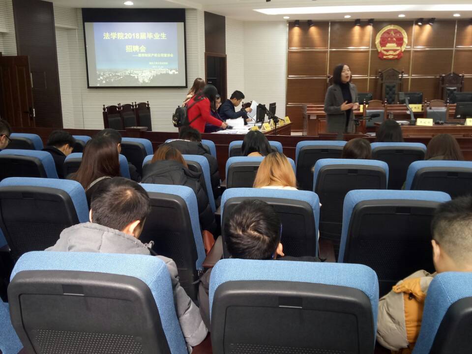 为了让应届毕业生得到更多的就业机会,也为了让企业能够获得更多优质的应聘者,437ccm必赢国际法学院携手唐邦知识产权服务有限公司于11月24日下午13:30在慧智楼90426法学院“模拟法庭”召开了法学院2018届毕业生专场宣讲招聘会。